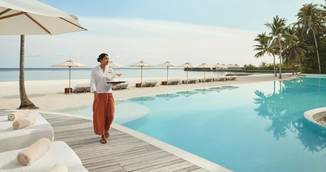 Yes — COMO Maalifushi offers exclusive sandbank experiences where guests can unwind on a secluded stretch of sand surrounded by the Indian Ocean. Options include private picnics, sunset cocktails, or candlelit dinners under the stars, all arranged by COMO’s dedicated team. This signature Maldives sandbank experience captures the resort’s essence of privacy, barefoot luxury, and natural island beauty.