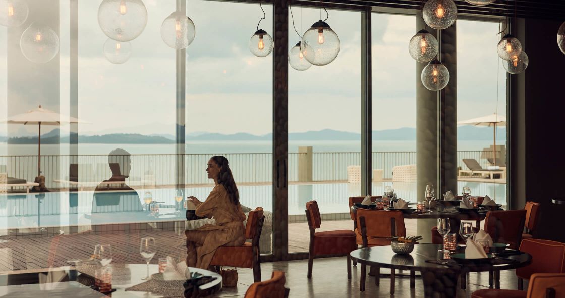 COMO Point Yamu features two restaurants and a bar, offering distinct culinary experiences that blend Thai, Italian, and health-focused cuisines, all paired with breathtaking ocean views.